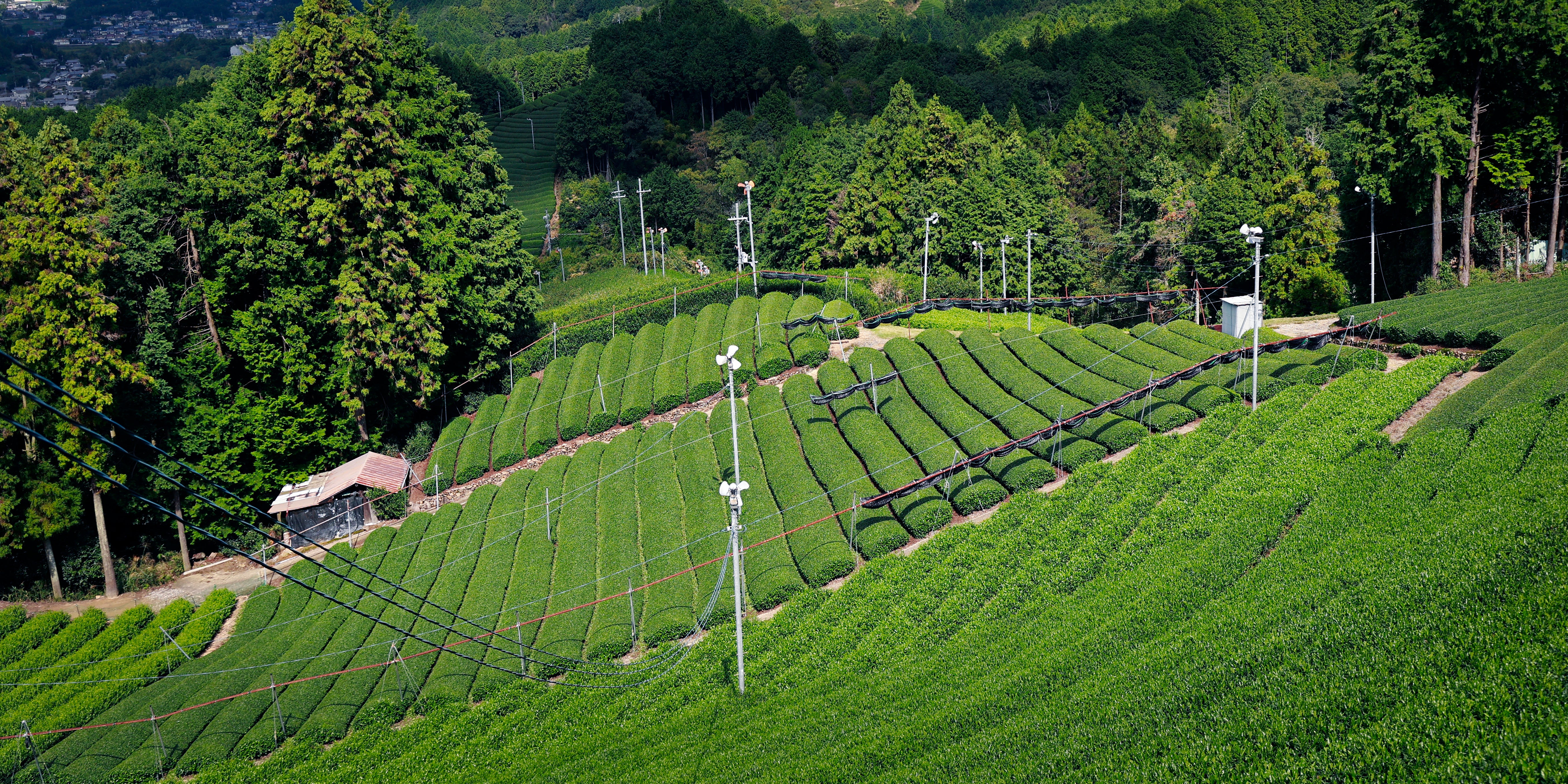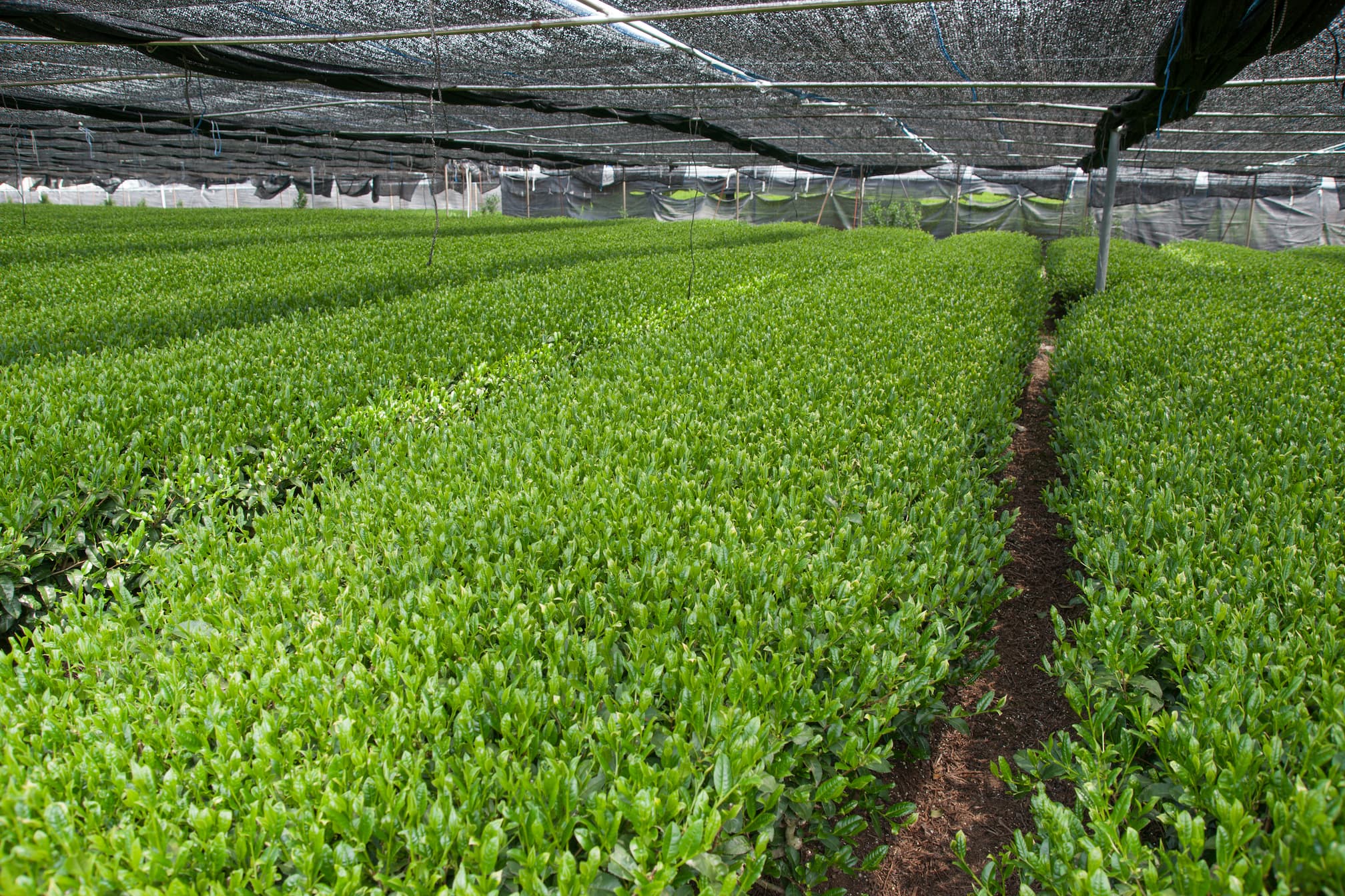 About 20–30 days before harvest, tea plants are shaded under traditional tana canopies or modern kabuse nets. Shading reduces sunlight, raising amino acids, lowering bitterness, and deepening the green colour.